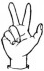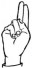 На ћирилици написано ЛАБУДА МИЛИВОЈЕВИЋ састоји се из 17 слова [?]. Исписано ћириличном једноручном азбуком за глувонеме: